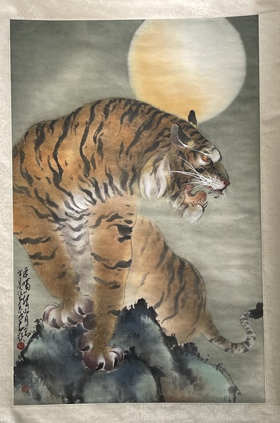不過胡宇基先生也非因虎年而刻意特別作畫,而是過去繪畫創作中,虎便是其中的題材。在他的畫冊《宇內芳清》(2003)的「荒野境界」專題中,《草澤雄風》(1982)、《虎嘯》(2001)、《憇息》(2002),都是過去數十年成熟代表作,彷彿向嶺南畫派擅畫猛獸的師祖高劍父(也有《草澤雄風》同名畫作)、高奇峰致意。