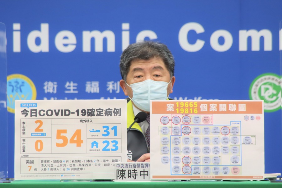 陳時中表示,本土新增2例確診個案,都與新北設計師延伸的宗教集會群聚案有關,其中1位確診個案(案20249)為居家隔離陰轉陽的狀況,為確診個案的同住家人。另一名新增確診個案(案20248),目前研判為同一群聚案延伸,但陳時中表示,目前雖然與確診者有足跡重疊,但還需要進行疫調,釐清相關狀況。
