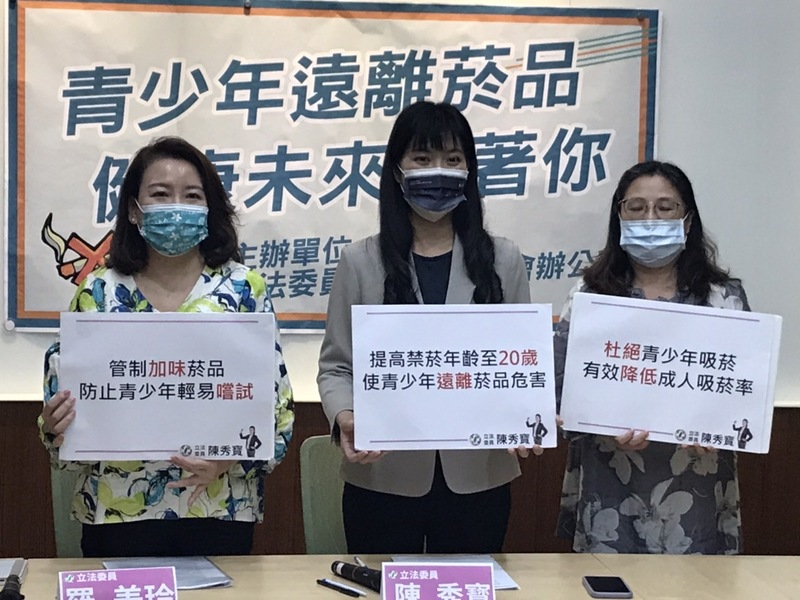 【台灣醒報記者簡嘉佑台北報導】禁菸年齡應提高至20歲,並增加菸品警示圖文面積!立委陳秀寳15日記者會指出,超過78%的吸菸者在20歲前就開始抽菸,但因青少年大腦仍處於發展階段,易受尼古丁影響而上癮。同時,立委羅美玲表示,加味菸以其他香味掩蓋菸味,而導致青少年更願意嘗試吸菸,故應針對加味菸予以規範。