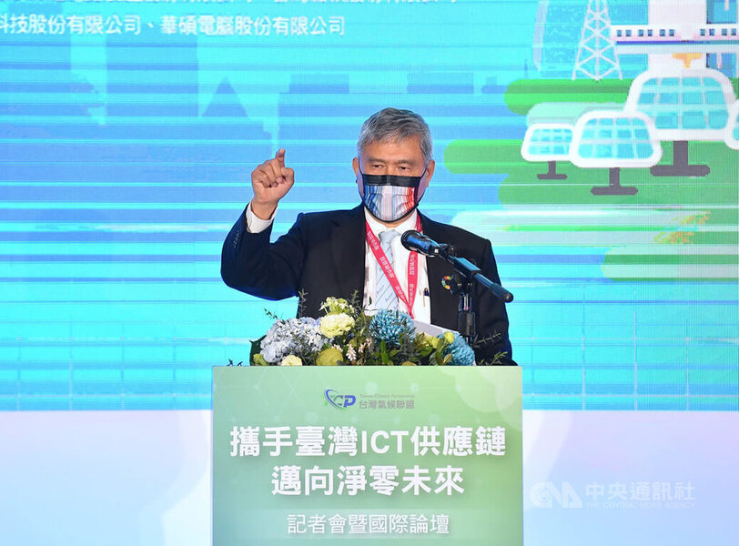 「ICT(資通產業)供應鏈開創變革」座談現場,企業、政府冠蓋雲集,副總統賴清德、經濟部能源局局長游振偉,與台積電、台灣微軟與和碩等多間公司出席記者會,盼能鼓勵科技業從低碳到淨零。