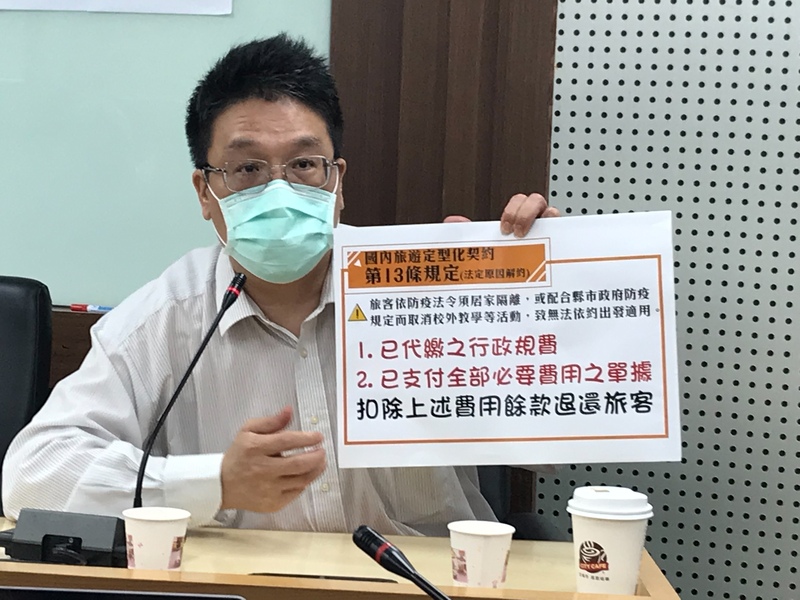 許禓哲則表示,現在主要分為兩種狀況,第一、如果旅客依照防疫法令需要居家隔離,或配合地方政府規定而取消校外教學活動,導致無法依約出發時,則遵循《國內旅遊定型化契約》第13條辦理,規定業者除了已代繳行政規費等費用後,須將其他餘款退還旅客。