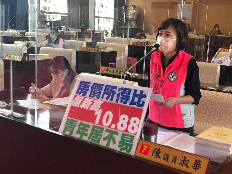 民進黨立委陳淑華、賴佳微、張耀中、周永鴻等人指出,台中市房價所得比自110年第2季的9.87倍,到第4季已達10.88,不到一年時間,民眾要不吃不喝多增一年才買得起房子。民眾貸款負擔也來到43.5%的歷史新高,其所得要付出近一半交房貸,不要說年輕人,已就業多時的青年、中年都很難負擔。