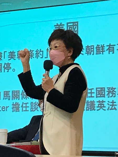 呂秀蓮從馬關條約的歷史談起,先是感嘆《馬關條約》的談判桌上有日、美、中的代表,卻沒有台灣代表。她也指出,甲午戰爭前後,還想要挽救台灣的人只剩下當時的湖廣總督張之洞,曾遊說英、法兩國積極協助台灣,只可惜「孤掌難鳴」。呂秀蓮指出,資料顯示,法國當時是有心動要協助台灣,但剛好該國屬地馬達加斯加發生動亂,因此錯過協助台灣的時機。