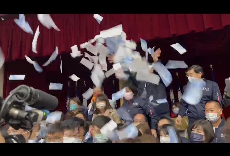 【台灣醒報記者簡嘉佑台北報導】國務機要費除罪化因有為阿扁脫罪嫌疑而成朝野攻防焦點,現場火藥味濃厚!審查會議開始前,國民黨團在現場灑下假鈔,高呼「柯建銘排案居心不良,就為阿扁脫罪」,更指出民進黨為了強行通過爭議法案,不顧嚴峻的疫情,更提出「散會」的臨時決議,卻未能表決通過。