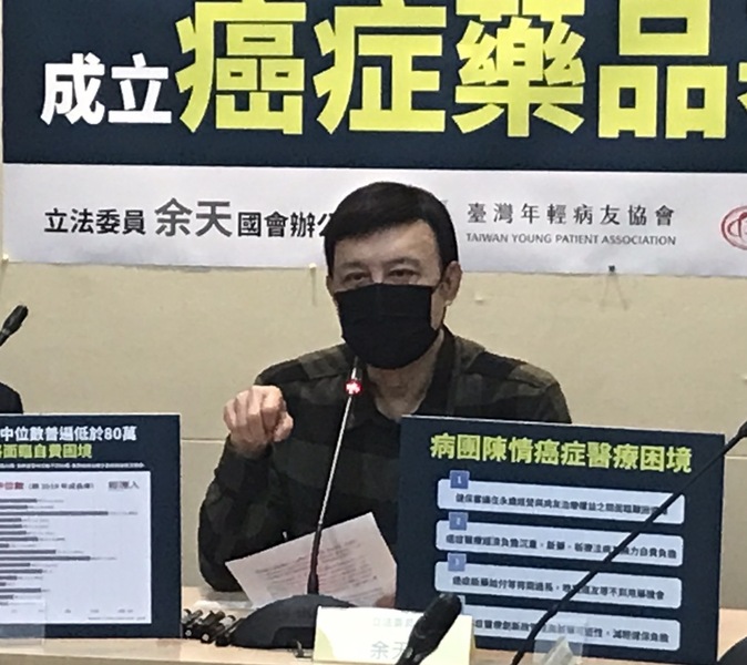 【台灣醒報記者簡嘉佑台北報導】癌症新藥看得到、買不了,台灣民眾「病不起」!針對多數癌症新藥不納健保給付的狀況,民進黨立委余天5日呼籲,在健保之外,應額外成立「台灣癌症藥品基金」。國健署主任秘書王怡人回應說,成立新基金前須要確保目前「無相同目的的基金」,而新藥基金還需要更深的研議。