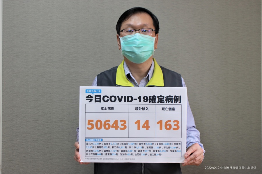 【台灣醒報記者簡嘉佑台北報導】本土新增50643例確診個案,另163例死亡個案!指揮中心記者會12日暫停一次,發言人莊人祥以錄影的方式宣布,死亡個案中有151人有癌症等重大疾病或慢性病史,並有110人未完整接種三劑疫苗;101人年齡超過80歲,約佔總數的62%。