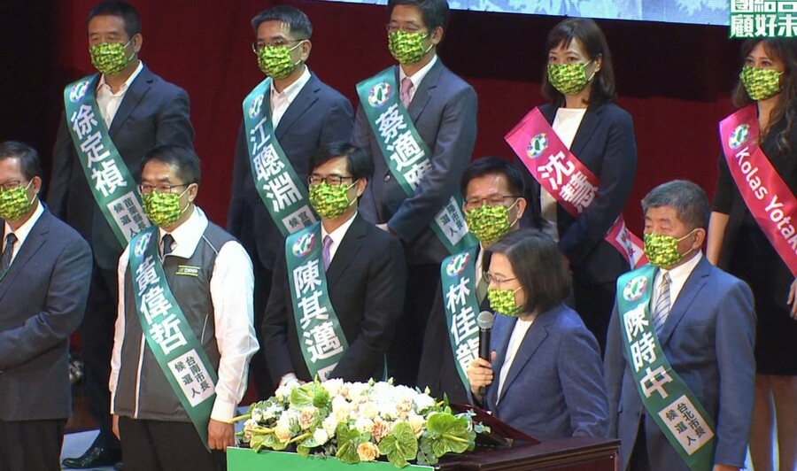 黨大會開始後,代表民進黨參選的候選人一上台,就受到黨員熱烈歡呼,尤其是行政院長蘇貞昌、台北市長候選人陳時中上台時的掌聲最大,但還是比不過蔡總統上台時的掌聲。蔡英文致詞時說,希望大家能記得政府「會做事」以外,還是「做對事」,政府未來將持續努力改革的腳步。