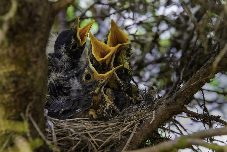 一隻大型鳥誤將蛋下在一種小型鳥的鳥巢裡,小鳥孵出來後,隻隻身材壯碩,胃口極大。小型母鳥以為這些都是她的小鳥,拚命捕食來餵小鳥,但怎樣餵也餵不飽小鳥的大嘴,終至母鳥累死。母鳥死後,幼鳥因不再有人餵食,不出幾天也都死了。