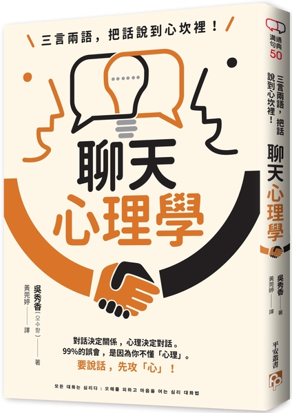 本書便提供了48個結合心理學原理與實務經驗的「心理對話法」,從利用「霍桑效應」給予對方關心,就算不催促對方也能獲得我們想要的東西;到根據對方的語氣,迎合對方有興趣的話題,展開有效率對話的「相似法則」;乃至運用「性向中心對話法」,按照對方的性別和性向改變對話方式。