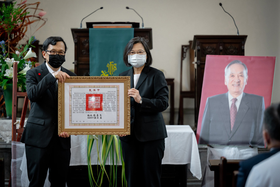 【台灣醒報記者簡嘉佑台北報導】「一生捍衛民主價值!」總統蔡英文、副總統賴清德與台北市長候選人陳時中14日都出席「彭明敏教授百歲紀念禮拜」。蔡英文頒褒揚令給已逝的前總統府資政彭明敏時強調,「台灣的主權、尊嚴、民主、自由就交給我們繼續守護」。牧師盧俊義證道時說,彭明敏在生命最後的盡頭,決定重新受洗,表明他願意成為耶穌救贖的對象。