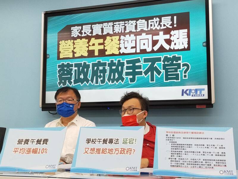 藍委鄭正鈐也說,有10多位朝野立委推出各種版本的「學校午餐法」,今年4月教育部也開始舉辦相關公聽會,但4個多月過去,仍未見行政院版的「學校午餐法」。他呼籲,民進黨政府應加速「學校營養午餐法」專法設立,如今高物價已讓原本地方政府的補助顯得不足,需由中央統一補助標準。
