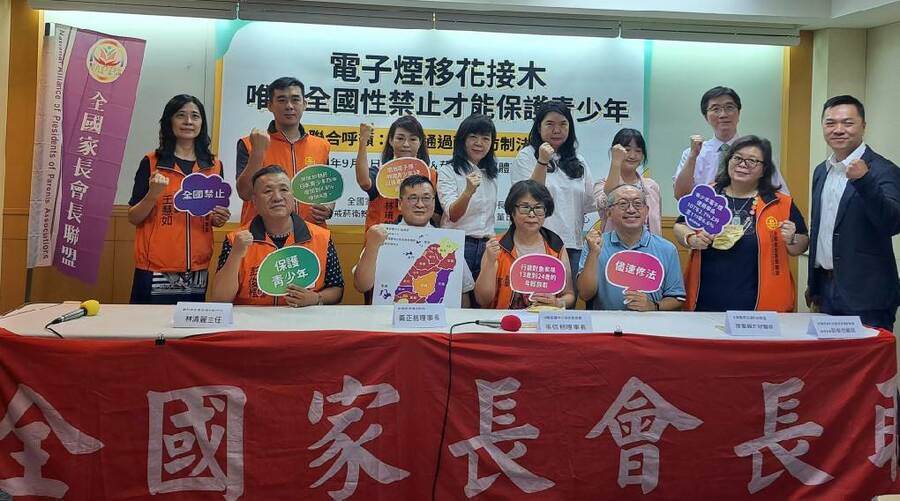 全國家長會長聯盟、中華民國中小學校長協會、台灣 菸害防制暨戒菸衛教學會、台灣醫界菸害防制聯盟與董氏基金會等五大團體於5日共同召開記者會,呼籲政府儘速針對延宕多年的菸害防制法修法,表示唯有中央統一發布禁止新型菸品法令,才能杜絕新型菸品的危害。
