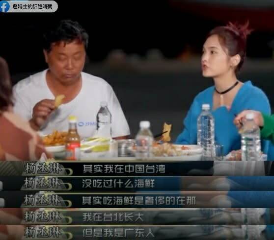 主角是土生土長的台灣藝人楊丞琳,一開始是圍剿她自稱是廣東人,隔一天是炮火全開,直接抨擊她居然說在台灣吃海鮮是奢侈的。是造謠生事、侮辱台灣,但是還原她在節目中的講話。她是這樣說的: