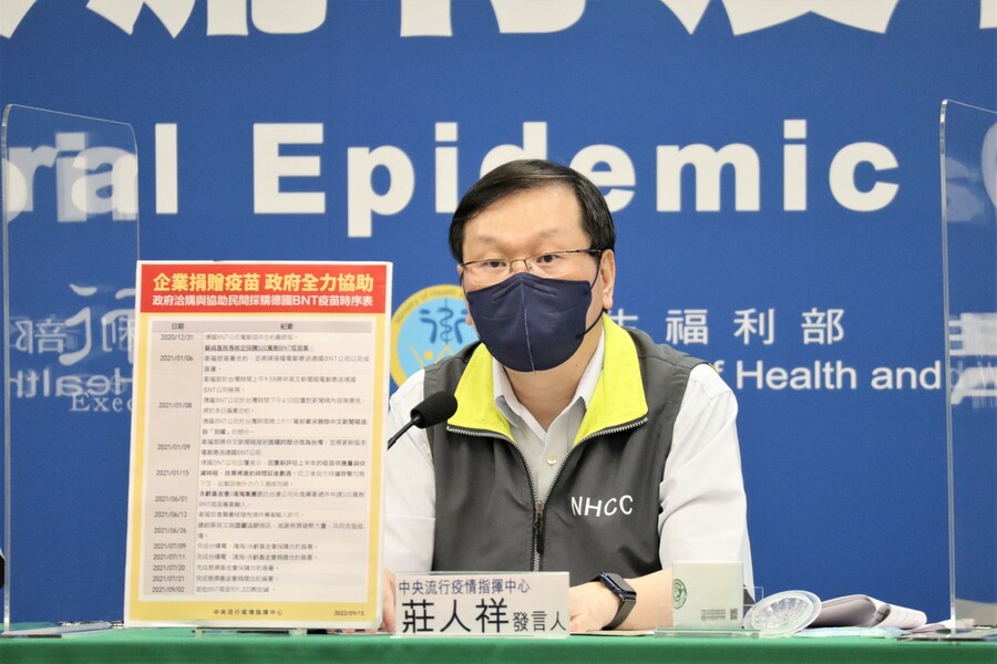 莊人祥說,鴻海與慈濟隨後表示要協助購買BNT疫苗,衛福部食藥署也核發「有條件專案輸入許可」,並在後續完成採購合約與捐贈合約,首批93萬1320劑的BNT疫苗也於去年9月2日到貨。