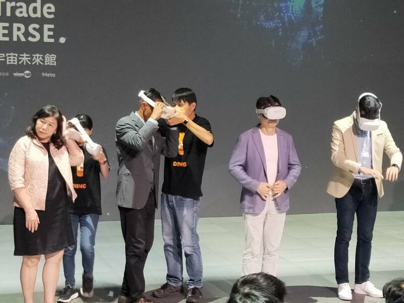 黃志芳頭戴Meta的最新VR裝置驚喜進場,他笑說,元宇宙將會是未來的產業趨勢,過去受新冠疫情影響,雖然有線上展覽,但都侷限在2D交流,未來館建立後,可以讓各國廠商交流有身歷其境的體驗,而且在台灣經貿網還有視覺上的饗宴,跨國進行商務交流時,四周會被台灣虛擬四季影像環繞。