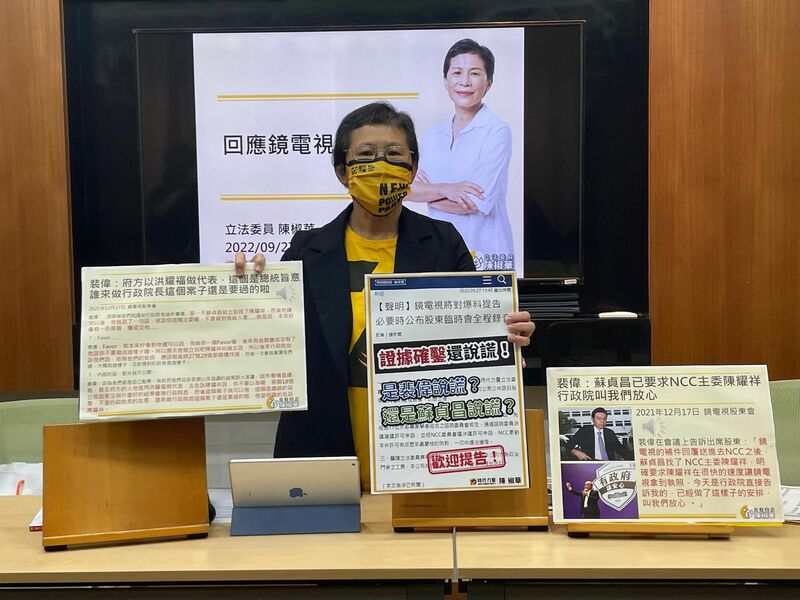 時代力量立委陳椒華27日在立院質詢行政院長蘇貞昌時,播放接獲的檢舉錄音,指稱是鏡電視內部會議對話錄音內容。她數度詢問備詢的蘇貞昌,鏡電視獲得申設許可,府院是否有給國家通訊傳播委員會(NCC)壓力?蘇貞昌表示,沒有這種事;NCC依法行使職權,獨立運作,政府不會干預。