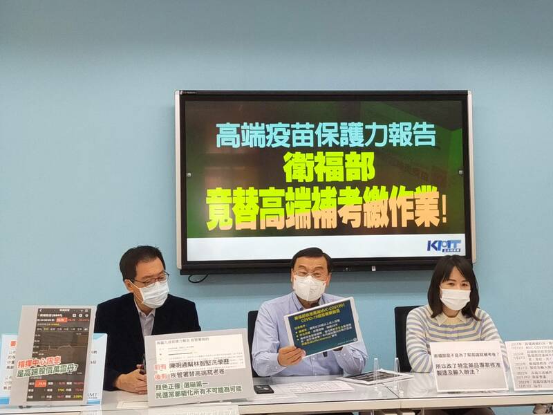 此外,國民黨立委謝衣鳯指出,《特定藥品專案核准製造及輸入辦法》第3條,原本只限藥廠能提出EUA申請,結果在7月27日修正增訂疾管署也可申請。她質疑,衛福部突然修訂該辦法,讓疾管署以公衛名義,蒐集所有施打疫苗民眾的資訊,做出疫苗保護效益報告,根本「一開始就計畫要幫高端補考」。