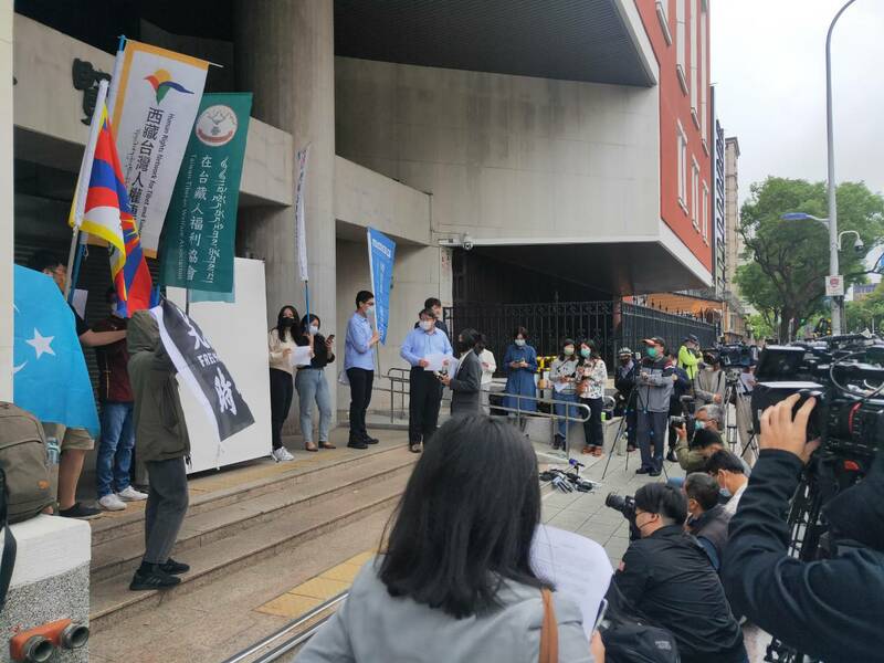 台灣學生聯合會、反送中抗爭者、在台藏人福利協會等10多個人權團體在立院門口,以大型白色布幕致敬「白紙革命」,高喊「習近平下台」、「不要重演六四」等口號。