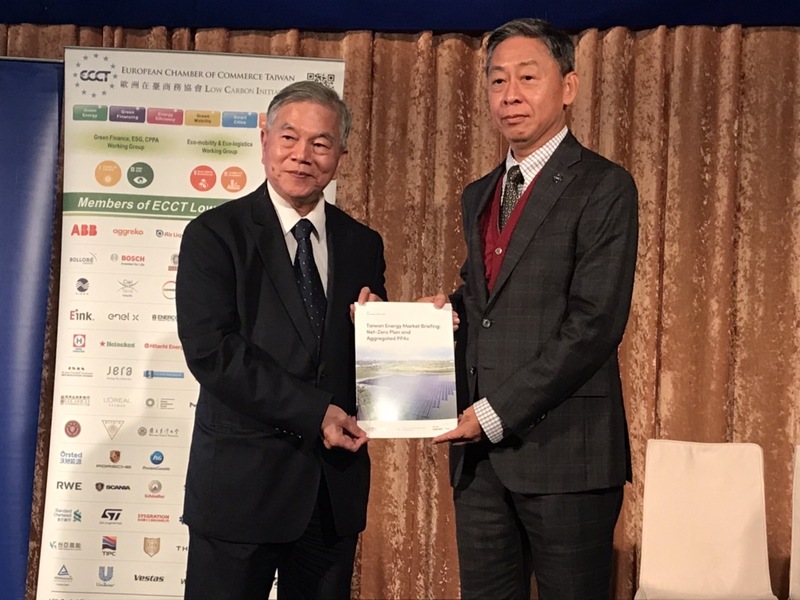 7日現場由歐洲在台商會理事長張瀚書將能源報告書遞交給沈榮津。沈榮津回應表示,收到建議書之後,會對綠電市場進行以下改革:將申請綠電的核准過程從書面化改成電子化,提高行政效能;綠電契約的售電比例將更彈性化;「綠電團購協議」會責請專門官員研究,並提出專案報告。
