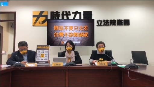 時代力量黨主席陳椒華表示,時代力量以及環保團體所主張的條文甚少被接受,且財政部也遲遲沒有回應關於碳稅的問題,讓人質疑是否真的有意願落實氣候變遷因應法。
