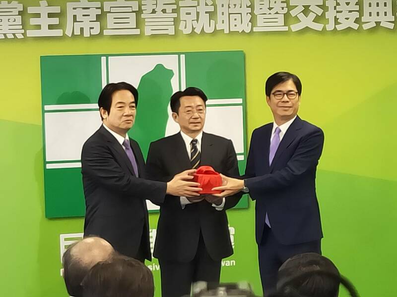 黨主席交接場面非常盛大,60幾位黨內高階幹部與媒體擠滿了民進黨8樓會議室。賴清德在仲裁委員會主委廖福特與眾黨員的見證下就任主席,並與代理主席陳其邁交接黨主席印信。