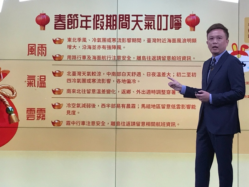 彭啟明說,過年期間,北部、東半部晴雨之間的變化較大;中部、南部大致都是穩定的天氣為主,只有年初二到初三雲量可能較多,整體平地降雨機會仍低。他呼籲,如果要安排假期活動的話,可能還是盡量往中南部走會比較理想,並提醒大家留意期間溫度起伏變化的狀況。