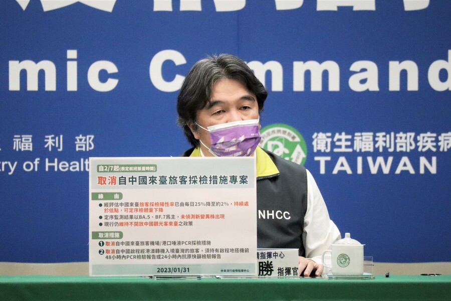 他說,考量到中國入境旅客陽性率陸續下降,至今僅1%左右,且未監測到新變異株出現,所以將至2月7日起,取消中國來台旅客採檢的措施。但王必勝也強調,現行仍維持不開放中國觀光客來台的政策。