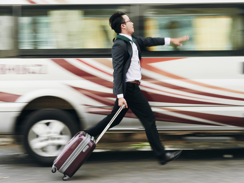 有個人在等公車時,看到路上有香蕉皮,怕別人踩到會滑跤,就撿起來丟到垃圾箱裡,回來時公車已開走,只好等下班車。