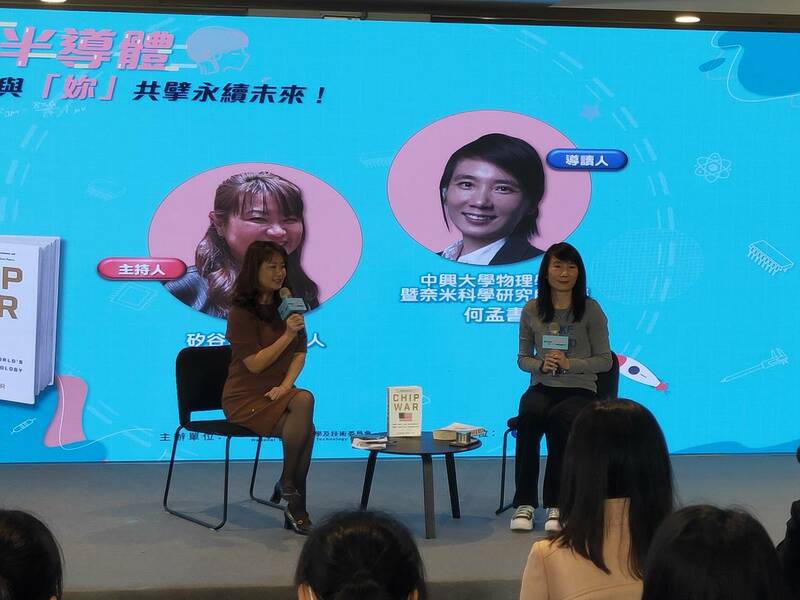 接著由中興大學教授何孟書與主持人李喬琚共同導讀最近很有名的暢銷書《晶片戰爭(Chip War)》,何孟書說,其實這本書是以歷史的角度探討半導體的發展,作者米勒是歷史學教授,對於半導體關鍵發展的人物有深刻的刻畫,包括摩爾定律的摩爾、台積電創辦人張忠謀等,對於理工科出身的她來說是很不同的角度。