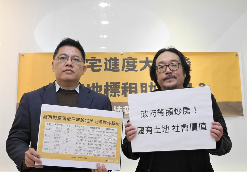 邱顯智舉例說,去年12月12日,國產署公報國防部原有的六張犁陸軍保養廠C區,以74億的價格標出地上權,這是歷史第3高的標價。他質疑,政府一邊說缺地蓋社會住宅,另一手卻又以高價將土地標給私人開發商,反而讓建商「貴買貴賣」,導致房價居高不下,國有地不應該作為營利用途。