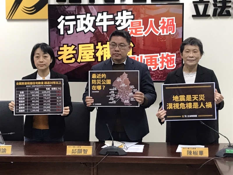 時代力量立委陳椒華表示,台灣位於板塊交界處,每年都發生超過700次的有感地震,檢視耐震防災的配套措施,不可或缺。她說,目前台灣有陸續探索到過去沒發現的「盲斷層」,政府應加速進行地質調查,並定期公告活動斷層與地質敏感區。
