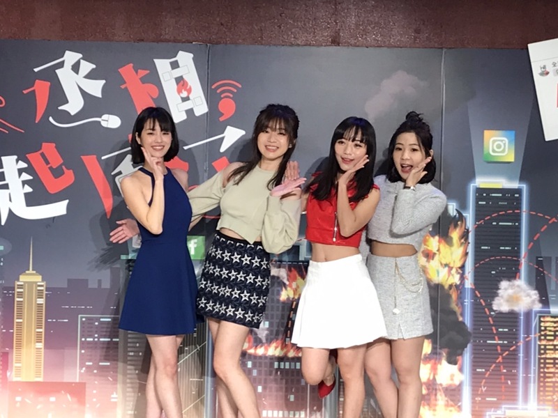 民眾黨發言人徐千晴(左起)、民進黨青年發展部副主任謝子涵、高雄市議員黃捷與國民黨市議員徐巧芯27日於喜劇《丞相,起風了》記者會亮相。(Photo by 簡嘉佑/台灣醒報)