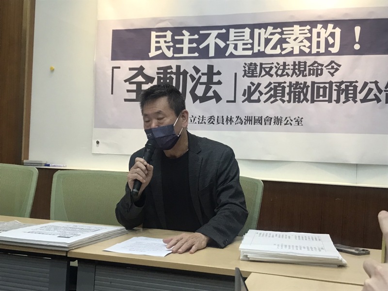 「目前全動法已經完成預公告14天,意味著修法草案其實隨時都可以送立法院,再以執政黨立委的多數來強渡關山,《全動法》的檢討或下架根本只是說說而已,」林為洲要求,全動法應該撤回預公告,如果有必要,再重新公告,以滿足60天預告期的規定。