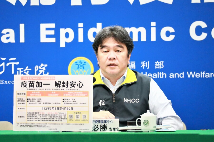 現場媒體提問指揮中心降級開設、口罩全面解封的時程,王必勝說,輕症免隔離措施20日實施後,會觀察大概2個禮拜的時間,如果疫情穩定、醫療能量充足,將會提早指揮中心降級開設的時間到4月。