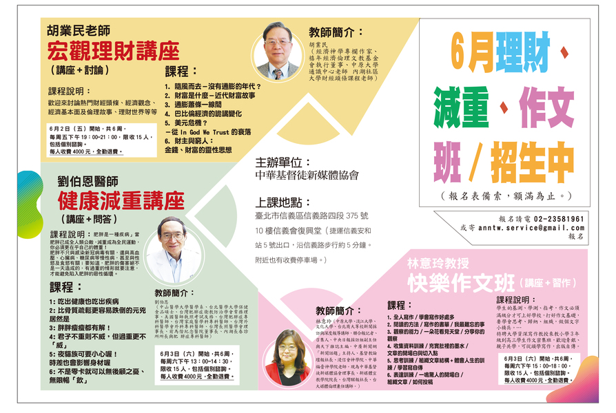 報名費每人4000元,全勤退費 (不缺席遲到早退,歡迎夫妻共學)