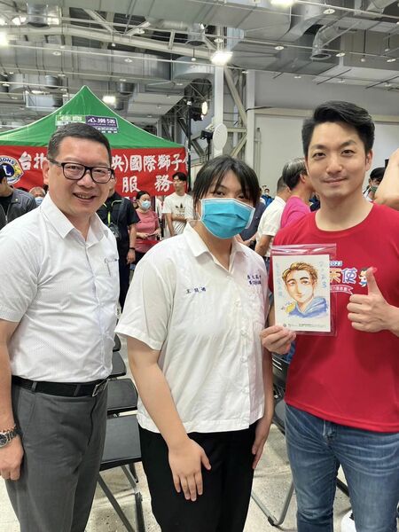 台北市長蔣萬安28日到泰北高中設計群的攤位進行人物速寫。(臉書截圖)