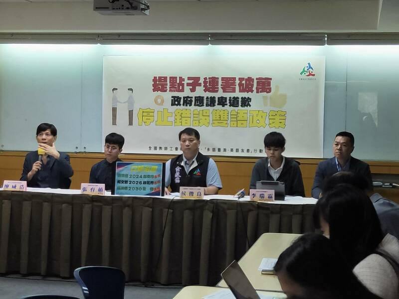【台灣醒報記者呂翔禾台北報導】「雙語政策未經評估就推動,恐讓學生中、英文都學不好!」全教總等教團1日召開記者會,呼籲停止「雙語政策」及相關補助,同時也應廢除雙語政策評鑑、非英語科教師用英語口試,並加強現有專門英語課程的教學,而非科科都用英文授課。教團表示,雙語政策已經沒有必要,而且還出現中文程度被拖累的現象,應該儘速停止。