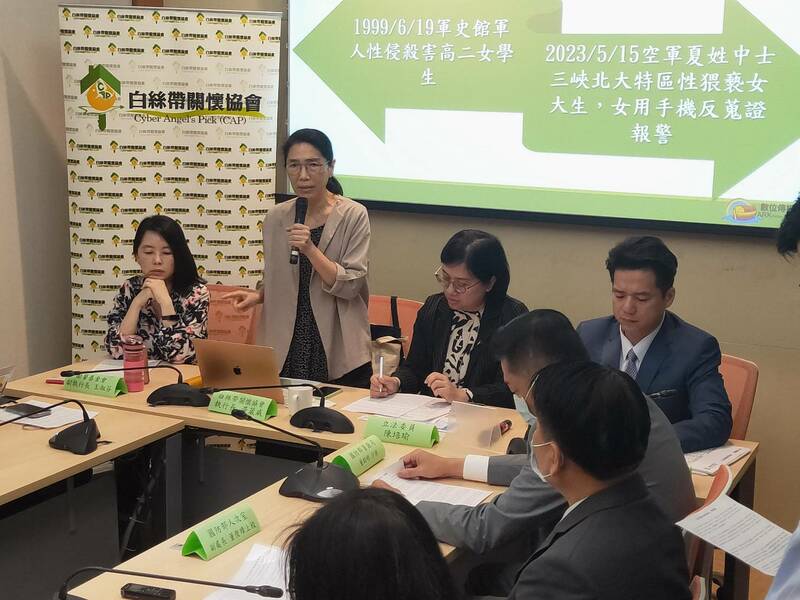 白絲帶關懷協會執行長黃葳威表示,軍隊自1999年至今有63件性案件遭起訴,以最近空軍夏姓中士案件為例,該中士在5月15日性猥褻女大生,女大生因正逢期末考,所以等到6月才報案,但軍方回應卻說該軍人已在26日退伍,視同平民,然後過幾天又改口說已經開除該中士,軍方的處理流程充滿疑點。