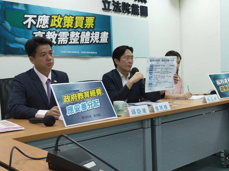 【台灣醒報記者呂翔禾台北報導】「不應該大撒幣的補助私校學費,而忽視高教資源落差!」民眾黨立委張其祿27日在記者會直言,政府忽略技職教育與高教資源落差等問題,卻在選前要補貼私校學生學費,完全是政策買票。立委邱臣遠呼籲政府,暫緩推動私校學生學費補助,並全面檢討教育政策。