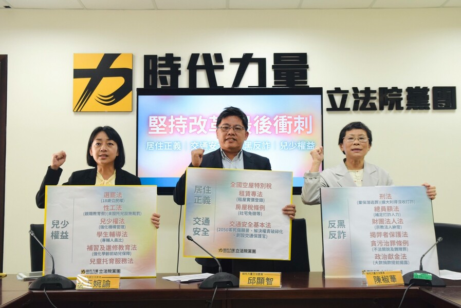 時力黨團19日提出四大主軸優先法案,分別是居住正義、交通安全、反黑反詐、兒少權益。邱顯智首先表示,交通零死亡不該只是口號,本會期應儘速通過《交通安全基本法》。
