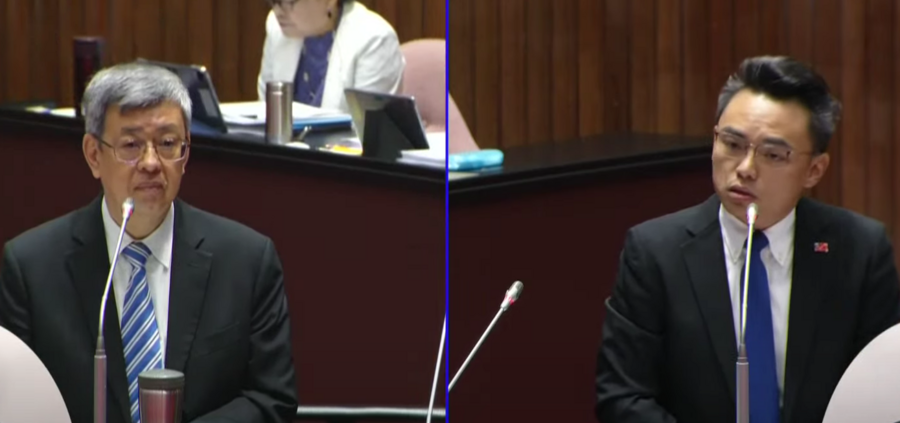 陳建仁回應說,「昨天整個討論的過程當中,就是中捷……」洪孟楷打斷陳建仁逼問:「有沒有有力人士?」但陳建仁接著說,「中捷藍線確實從開始的時候,這些站址確實出現移動。」