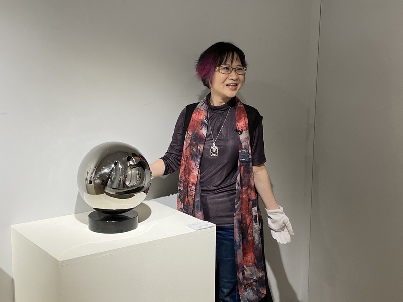 張蓬潔表示,書法字形的「雕塑之衣」,雕塑品必因外在質感與色彩的改變,使觀者感受不同,「光影水墨」是一種結合了光影效果和水墨藝術的創作風格,透過光線,水墨與彩膜的疊合,可以創造出戲劇性的視覺效果。