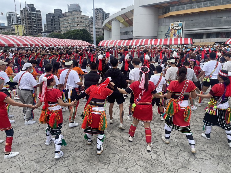 【台灣醒報記者簡嘉佑台北報導】隨著一聲吆喝聲,數百名來自不同族群的原住民引吭高歌,手牽著手圍成一個又一個大圓圈,團團圍住新北副市長劉和然,一同歡騰舞蹈!新北市原住民族聯合文化活動29日於板橋運動場隆重登場,也有不少小朋友穿上傳統服飾魚貫加入圍舞的行列,隨著高亢的歌聲,模仿大人舞動。