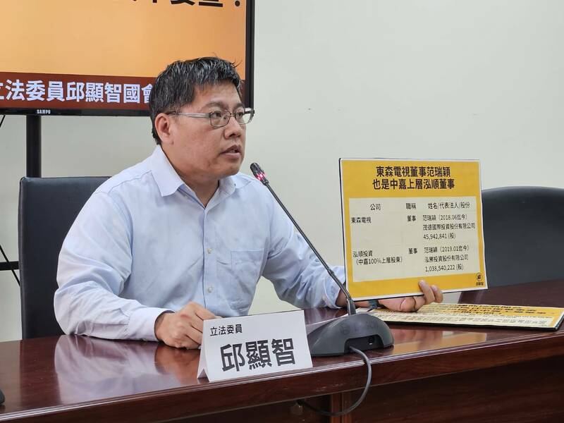 邱顯智表示,先前中嘉遭爆被三立收購,NCC在外界壓力下,才被迫坦承三立確實有以「法人」身分入主,並獲得中嘉27%股權。如今,作為東森電視董事的范瑞穎,竟然還能在泓順投資的指派下擔任中嘉集團董事,NCC作為監理機關的職能已經完全失能。