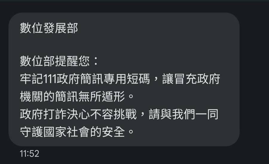 還有111能否詐騙集團模仿,數位部是說與五大電信業者合作,若非來自數位部伺服器的訊號,就無法寄出111的簡訊,詐騙集團是無法偽造的。還有為何不所有部會都強制用111,因為有些專線還有在使用,包括1922、165等。