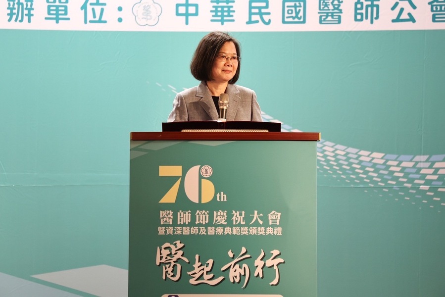 蔡英文總統首先頒獎給9位行醫滿70年的資深醫師,另有20位醫師取得「台灣醫療典範獎」、17位醫師榮獲「台灣醫療貢獻獎」等殊榮。蔡英文致詞恭喜獲獎人,並期許各位獲獎的精神能一棒接一棒延續下去,為台灣帶來更多正能量。