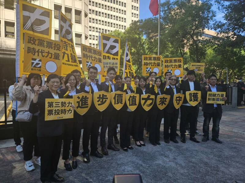 8位參選人手上別著黃絲巾,在現任立委王婉諭、邱顯智與陳椒華的帶領下,到中選會登記參選。王婉諭說,登記參選是告訴外界時代力量捍衛進步價值的決心,民眾在總統上面臨主權、藍白拖等不同因素考量下,需要含淚投票,但政黨票不用含淚,盼民眾選擇最能推動進步價值的時代力量。