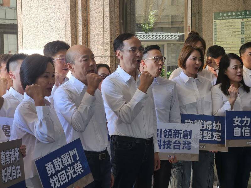 【台灣醒報記者呂翔禾台北報導】「擔任不分區立委,就要將人民聲音傳到國會,且嚴厲監督政府!」國民黨不分區立委第一名韓國瑜與黨主席朱立倫23日前往中選會登記,韓國瑜說,民進黨承諾的「清廉、勤政與愛鄉土」已經成為「神話故事」,盼民眾支持國民黨不分區。另針對藍白合,朱立倫說,盼柯郭到馬辦協商,讓馬總統跑來跑去不好。
