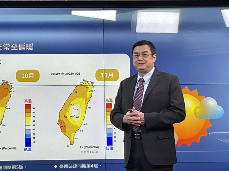 至於台灣冬季的天氣展望,陳怡良表示,目前聖嬰狀況持續,太平洋東暖西冷,預計會持續到明年春季,明年初夏才趨為正常。對台灣整體影響就是12月到2月整體氣候偏暖,明年1、2月雨量正常至偏多。