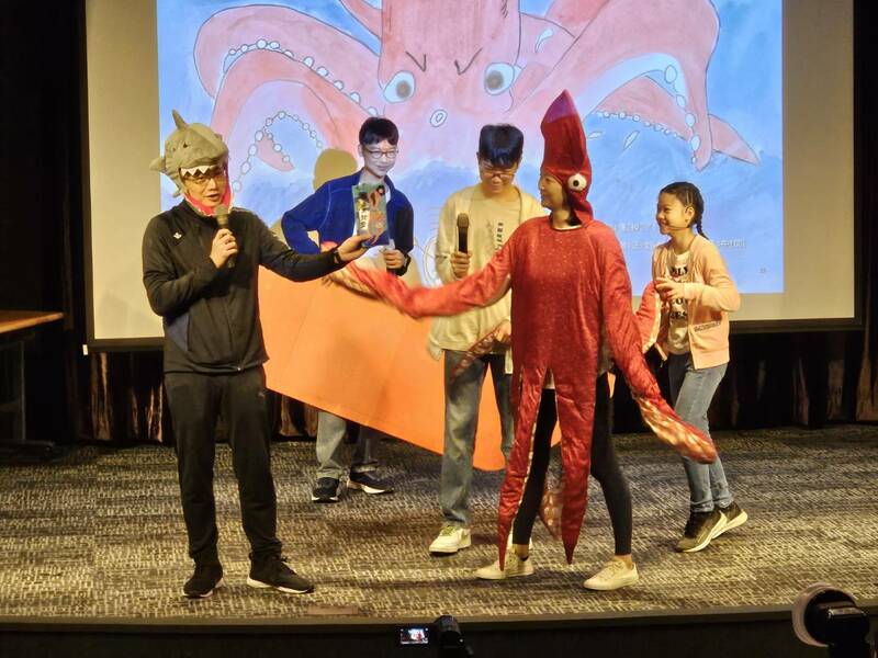 現場還將《狗狗保護集團》直接演出,由張永霓一家在台上歡樂粉墨登場,描述狗狗如果要從日本帶回台灣,即使把狗狗放在娃娃車、塞到媽媽肚子裡都帶不回去,坐船回去也會碰到深海的大鯊魚跟大魷魚。